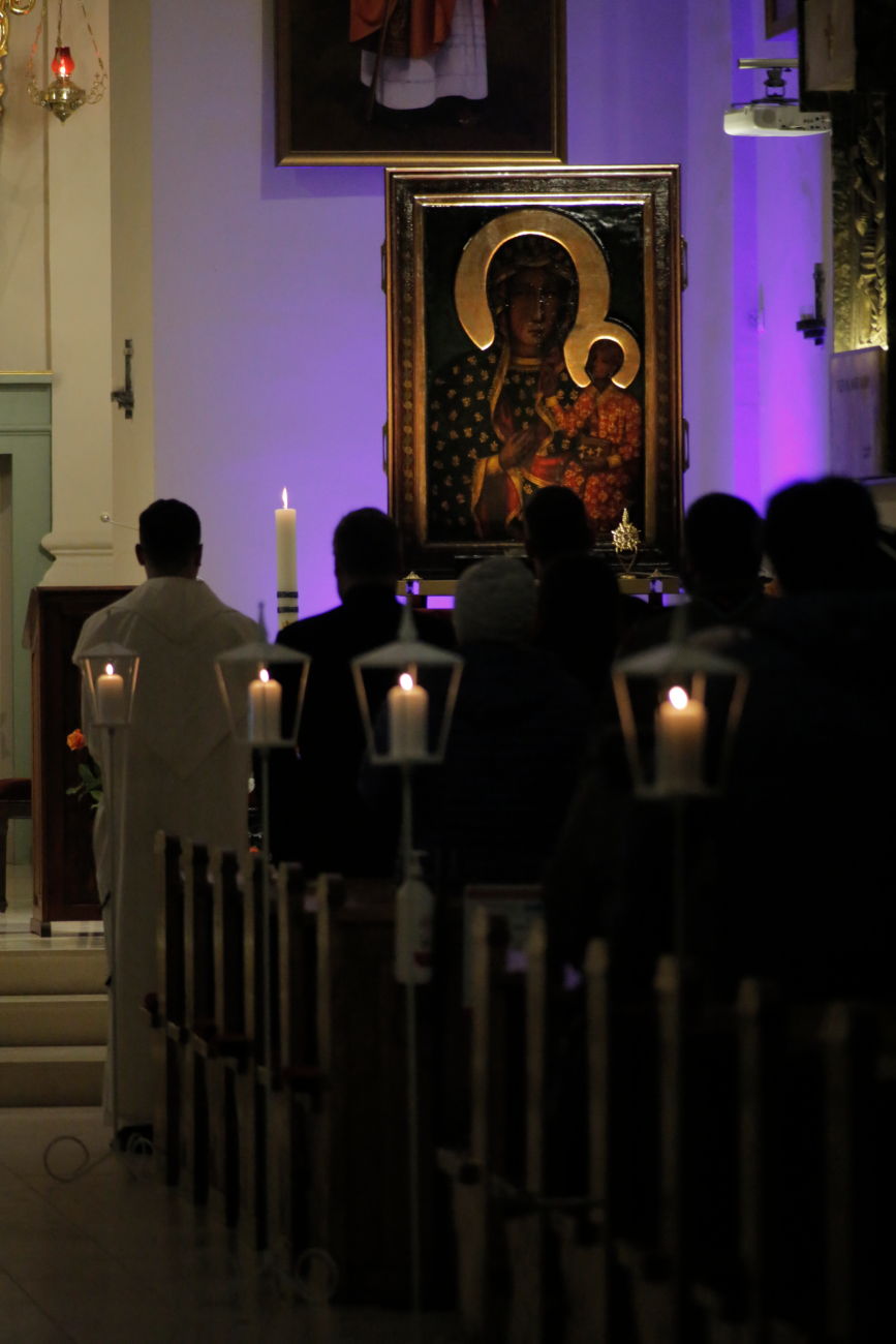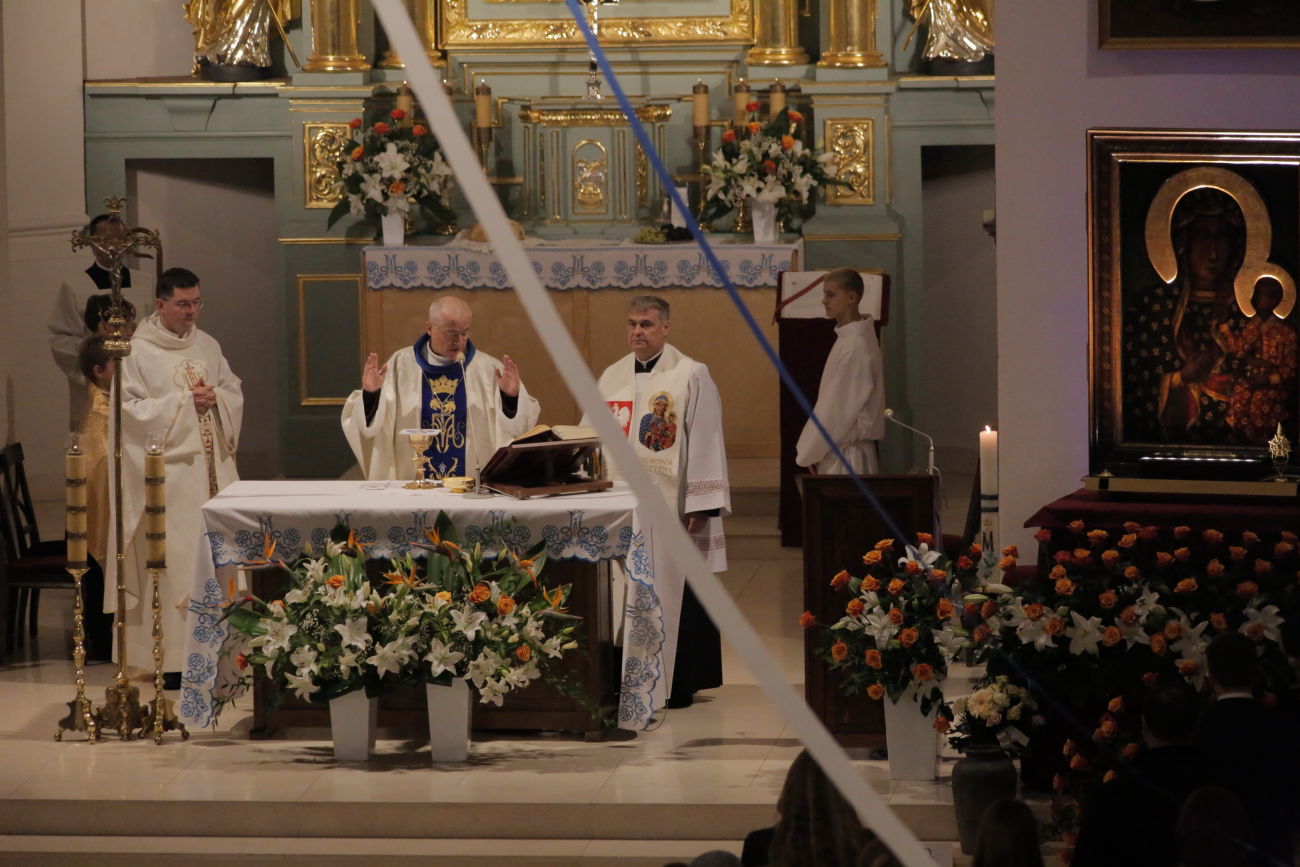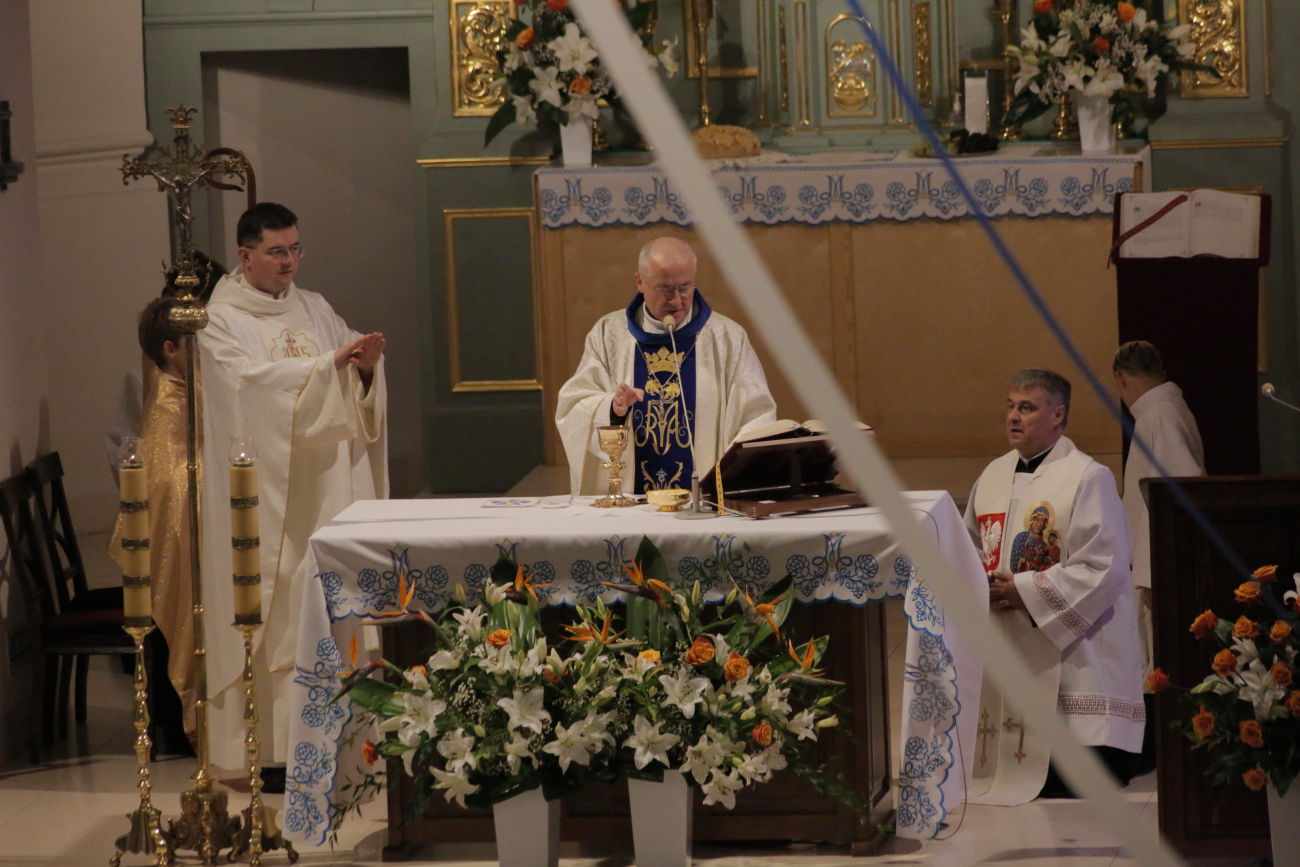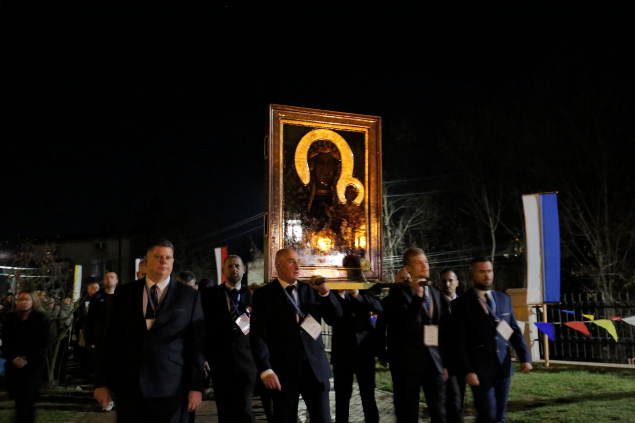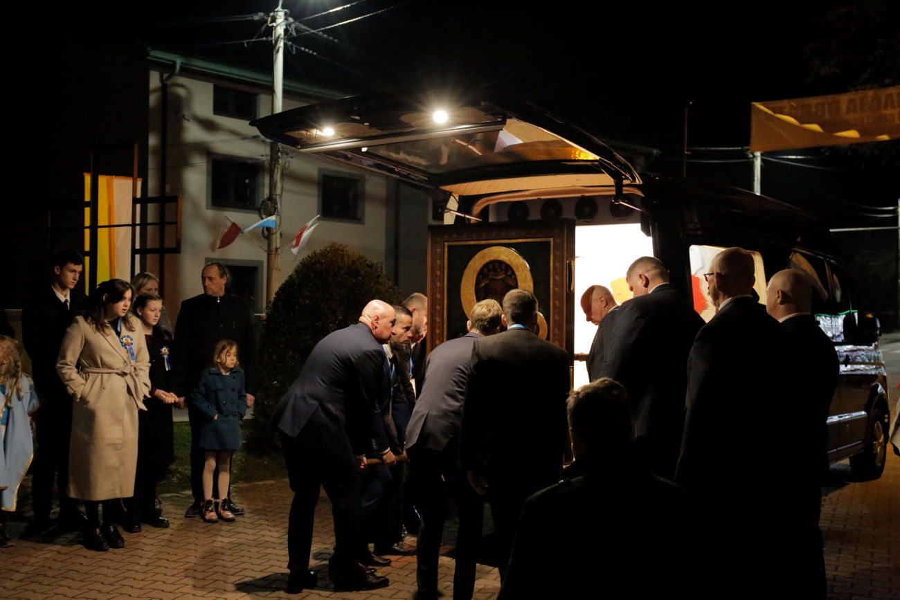 Mszy świętej powitania, która była zapewne dla wielu zgromadzonych wiernych wielkim duchowym przeżyciem, przewodniczył Misjonarz ks. Kanonik Piotr Hernoga,. Niejeden z nas wpatrzony w Wizerunek Matki Bożej – modlił się o łaski dla siebie, bliskich, rodziny. Po Mszy św. nastąpiło czuwanie parafian.