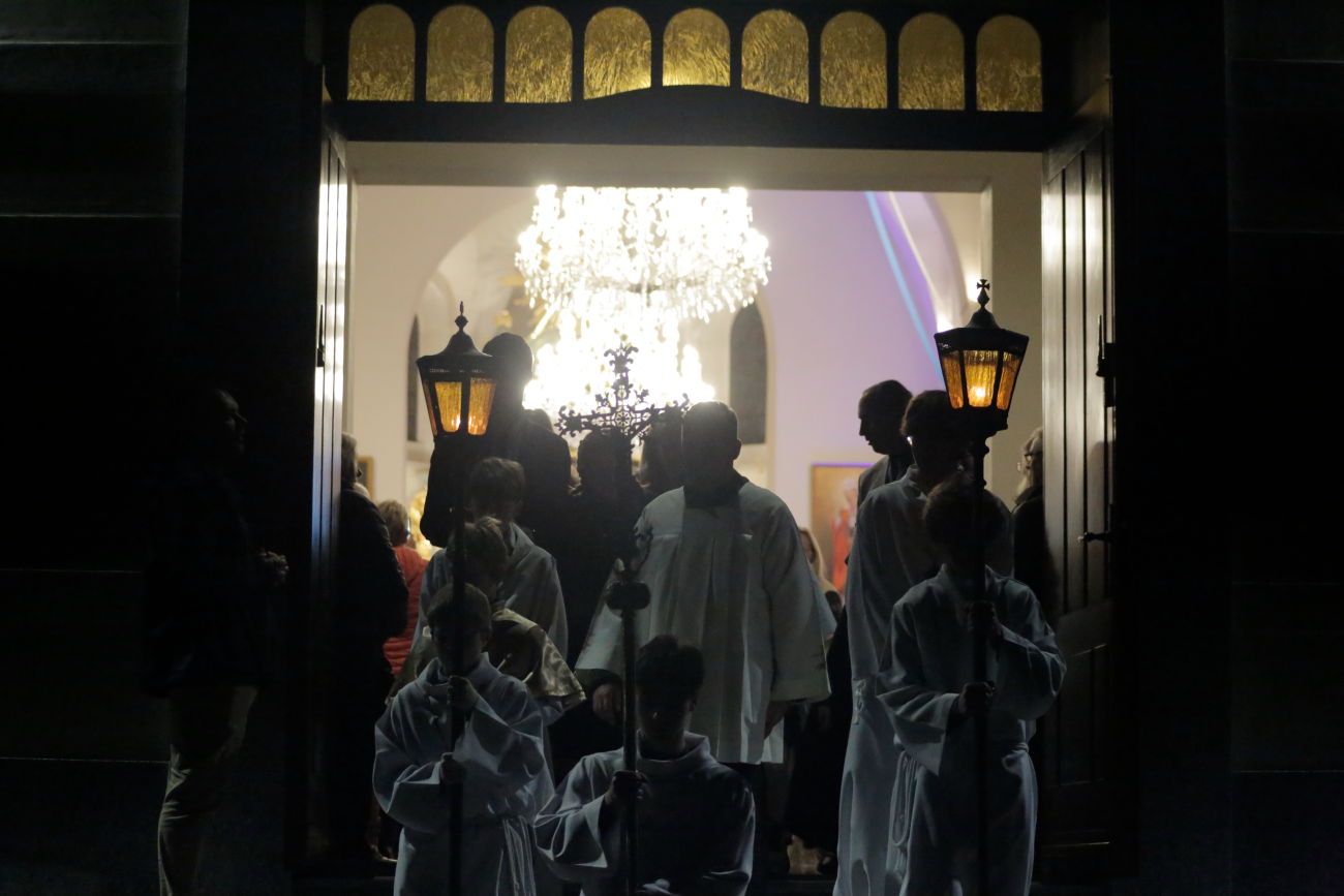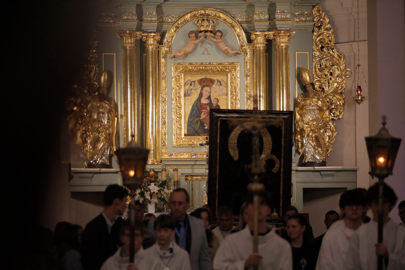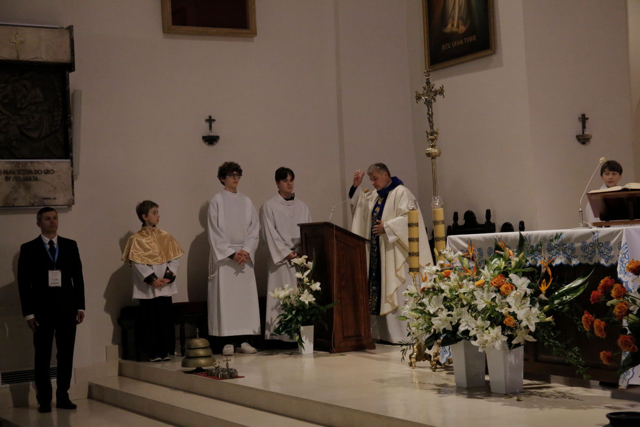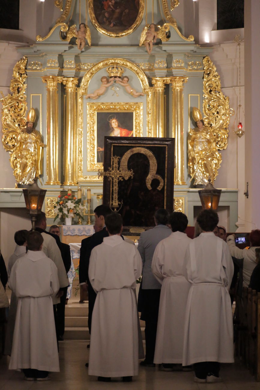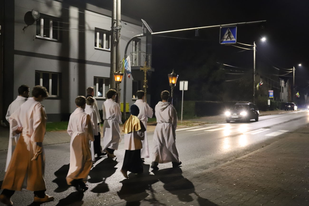 Mszy świętej powitania, która była zapewne dla wielu zgromadzonych wiernych wielkim duchowym przeżyciem, przewodniczył Misjonarz ks. Kanonik Piotr Hernoga,. Niejeden z nas wpatrzony w Wizerunek Matki Bożej – modlił się o łaski dla siebie, bliskich, rodziny. Po Mszy św. nastąpiło czuwanie parafian.