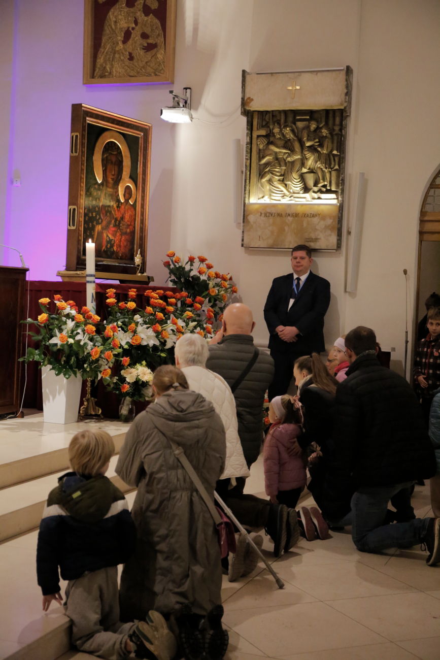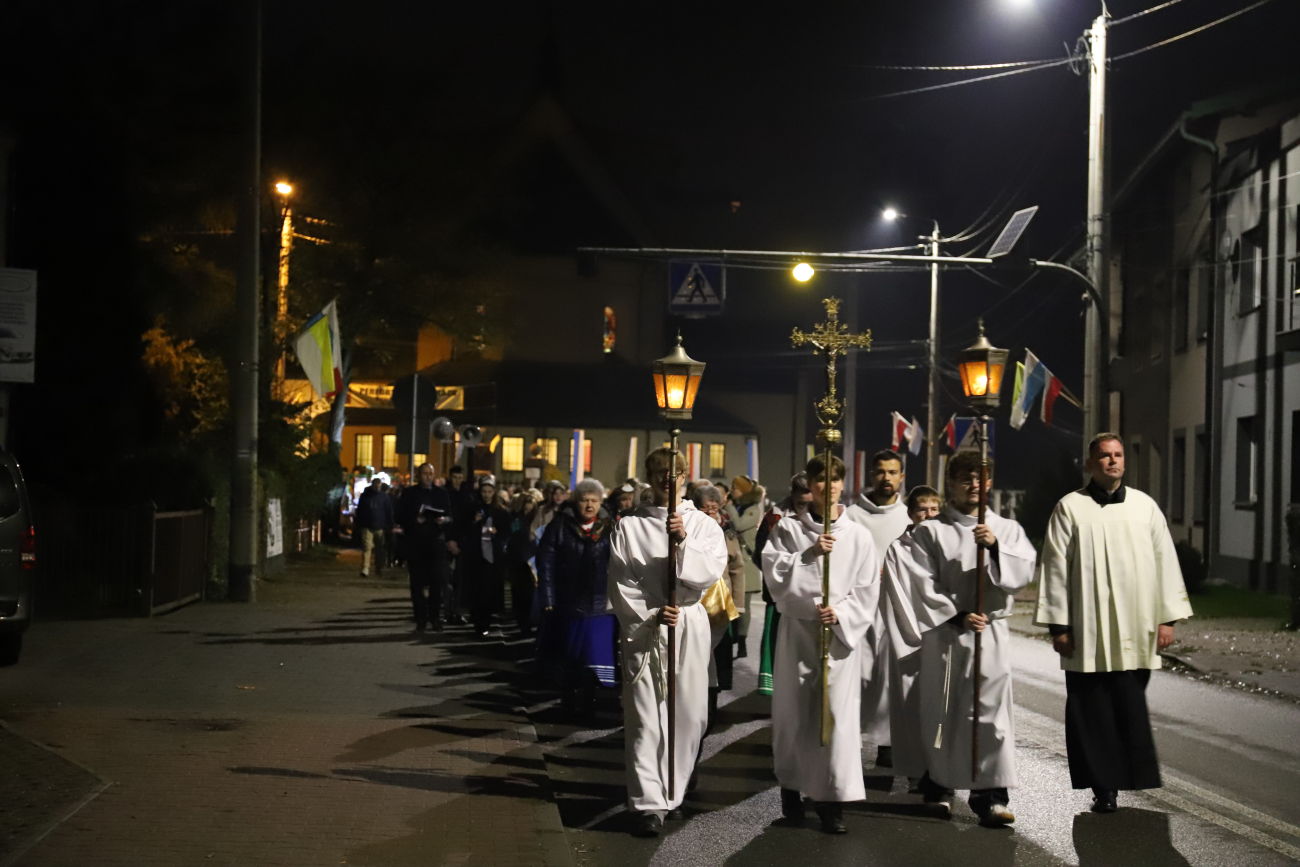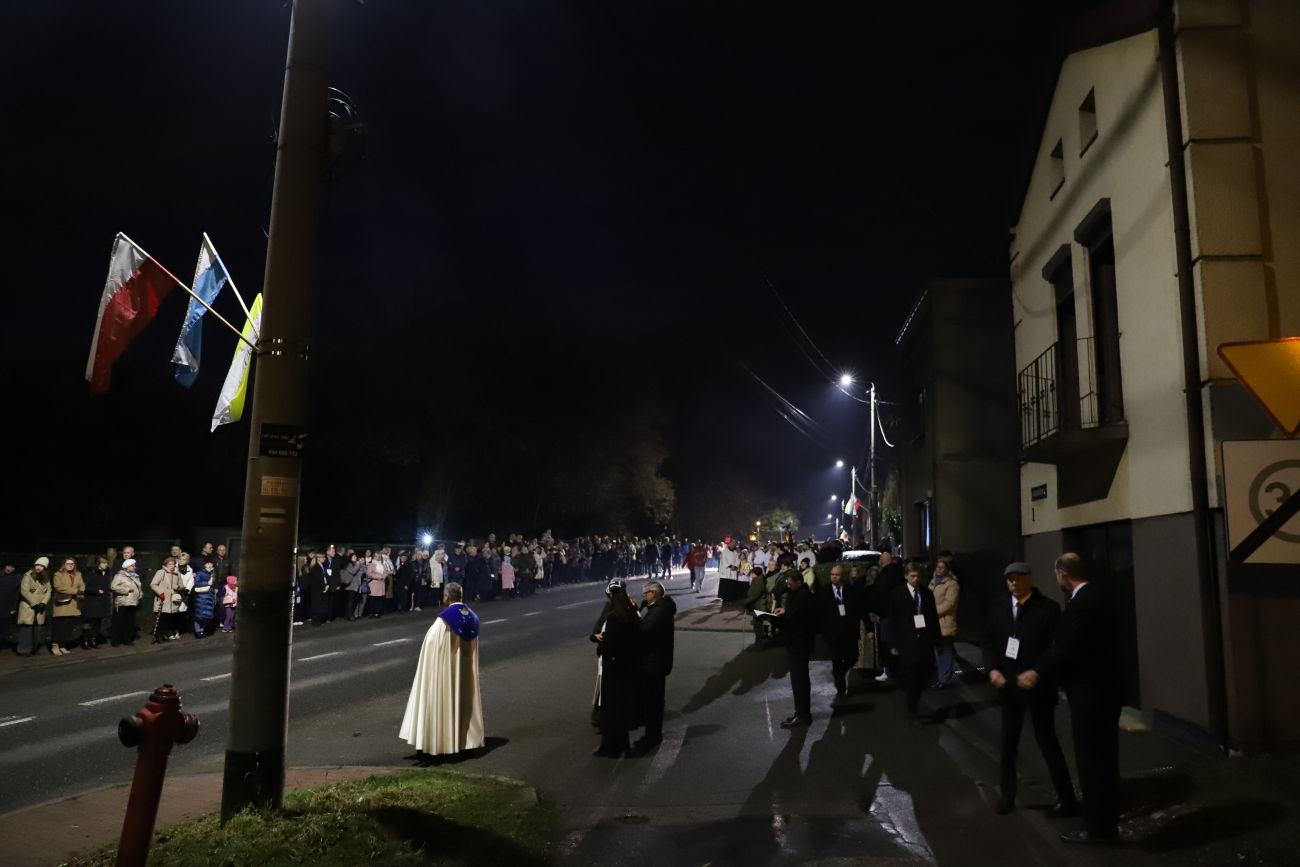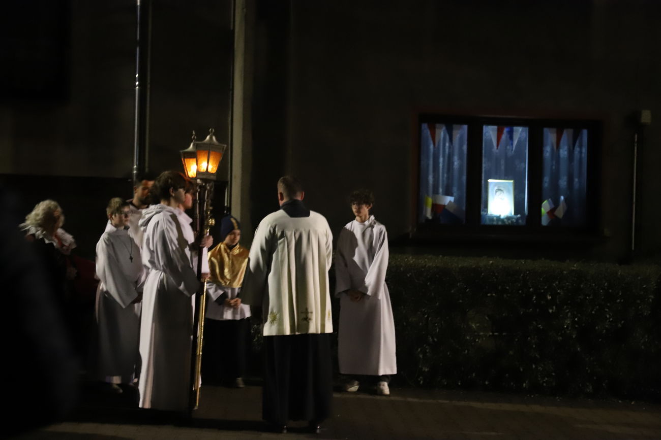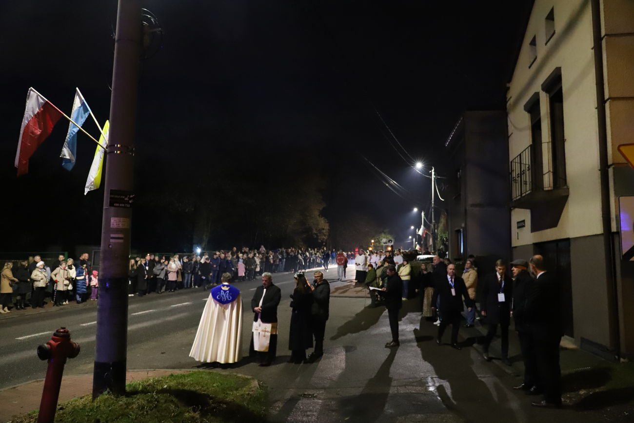 Po 45 – ciu latach we wtorek 11 listopada 2025 r. powitaliśmy z radością w naszej parafii Matkę Bożą Częstochowską. Mimo zimnego listopadowego wieczoru, parafianie po Nabożeństwie Oczekiwania, licznie wyruszyli na spotkanie z Maryją u zbiegu ulic Wolności i Podgórnej. Obraz ze wzruszeniem powitał ks. Proboszcz Piotr Pilśniak i wyruszyliśmy w procesji do naszej świątyni, gdzie nastąpiły dalsze powitania przez ks. Proboszcza, przedstawicieli wspólnoty parafialnej i młodzież.